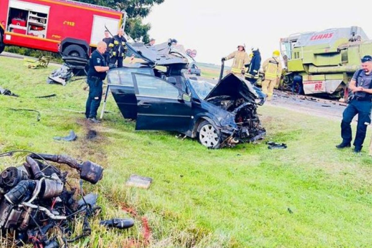 Po dużym zderzeniu z kombajnem, kierowca samochodu został zakleszczony w pojeździe – strażacy użyli sprzętu hydraulicznego, aby wydobyć mężczyznę i przekazali go medykom.
