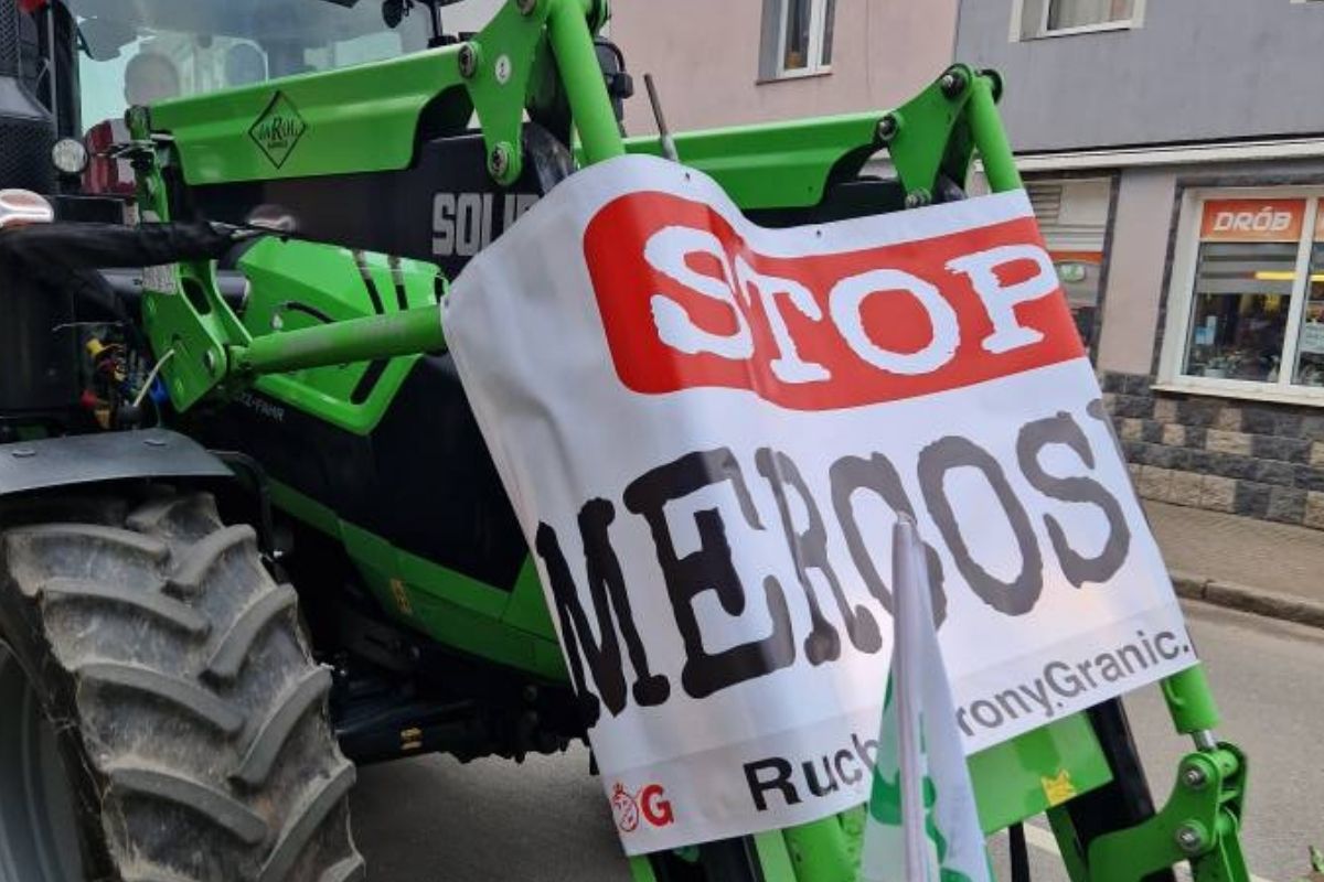 Na jednym z ciągników widniał napis „MERCOSUR – no“, odnoszący się do umowy o wolnym handlu z czterema krajami Ameryki Południowej.