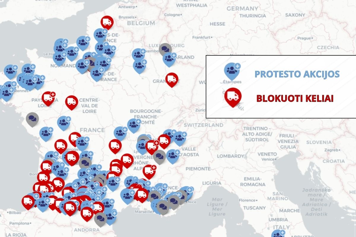Jak pokazuje na żywo mapa protestu, istnieją dziesiątki blokad drogowych, szczególnie w południowo-zachodniej Francji. Są one oznaczone czerwonym symbolem.